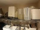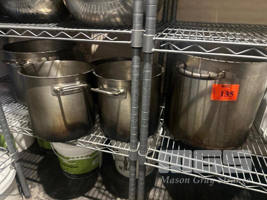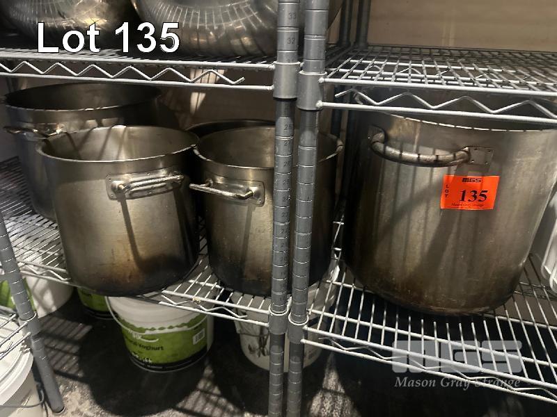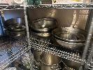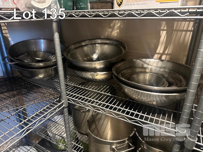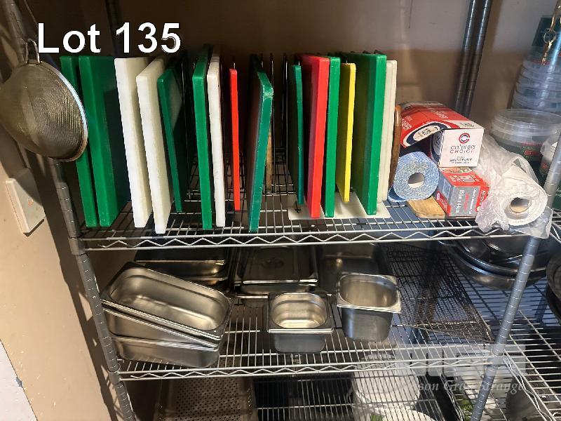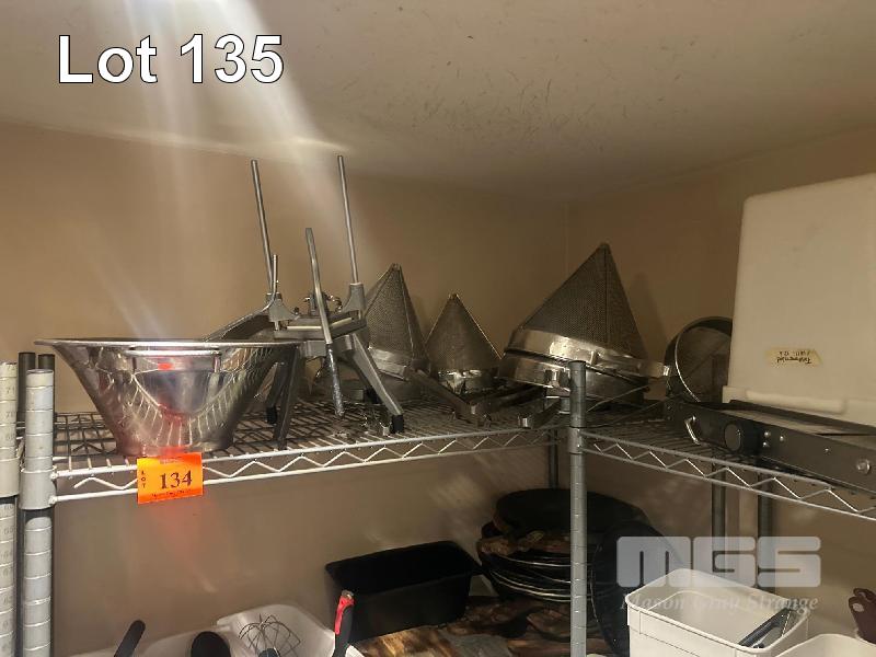 LARGE QUANTITY KITCHEN SUNDRIES, STOCK POTS, CUTTING BOARDS, SIEVES, JUGS, BOWLS, ETC