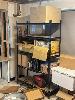 3 x STORAGE RACKS, 4 TIER & CONTENTS CLEANING PRODUCTS, TAKEAWAY CONTAINERS, DOCKET PRINTER PAPER, ETC
