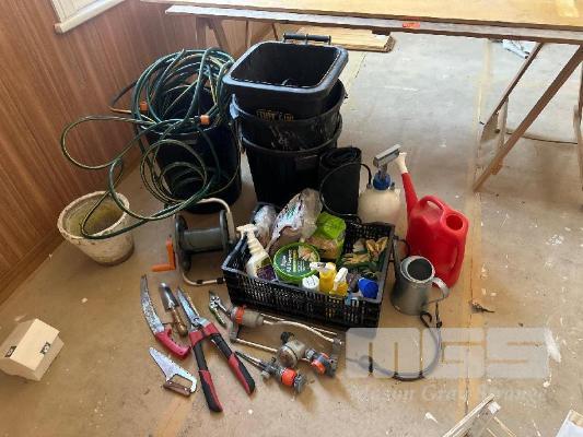HOSE, WATERING CANS, SPRAYER, HAND TOOLS, SPRINKLERS, FERTILIZERS, ETC