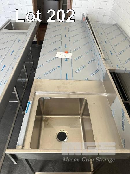 STAINLESS STEEL BENCH WITH DEEP BOWL SINK, 2800 x 730mm, WITH SPLASHBACK AS NEW