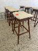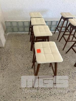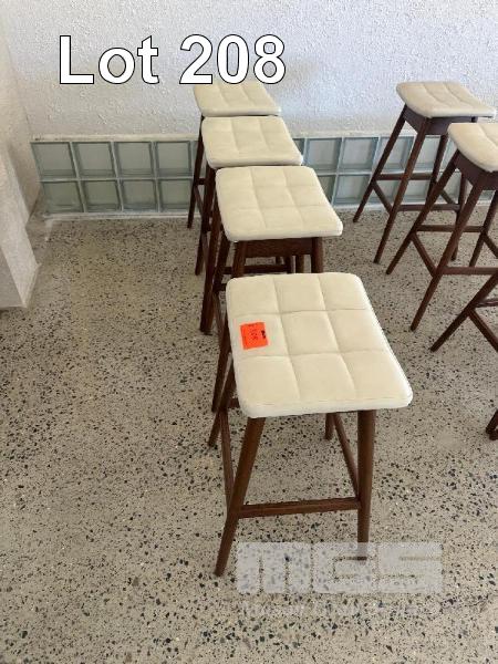 4 x TIMBER BAR STOOLS, WORK FORCE, EGGSHELL WHITE LEATHER TOPS, 700mm (H)