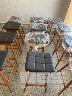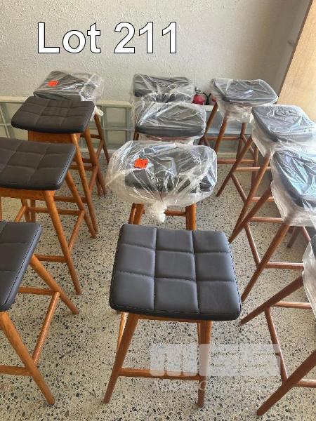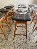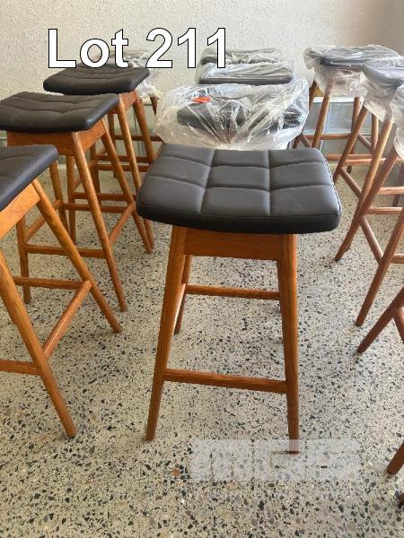 4 x TIMBER BAR STOOLS, WORK FORCE, BLACK LEATHER TOPS, 700mm (H)