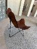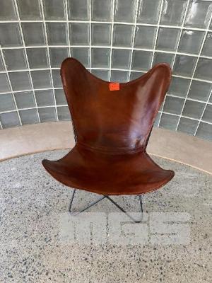 OCCASIONAL CHAIR, LEATHER TOP, BLACK STEEL FRAME