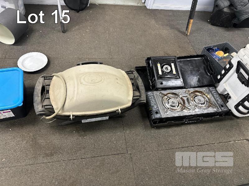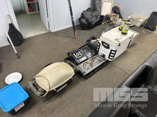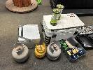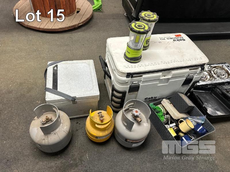 CAMPING KIT! 70L ESKY, 22L ESKY, 2 x BUTANE STOVES, WEBBER BBQ & LPG BOTTLES, 2 x ARLEC LIGHTS & FISHING ROD