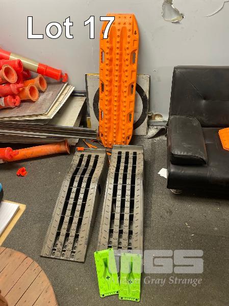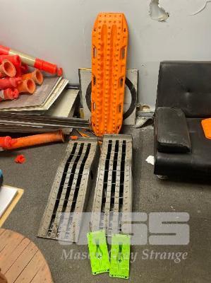 PAIR MAX TRAX RECOVERY BOARDS, PAIR TRED WHEEL CHOCKS, PAIR PORTABLE VEHICLE RAMPS