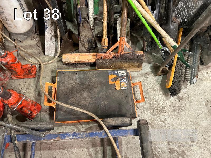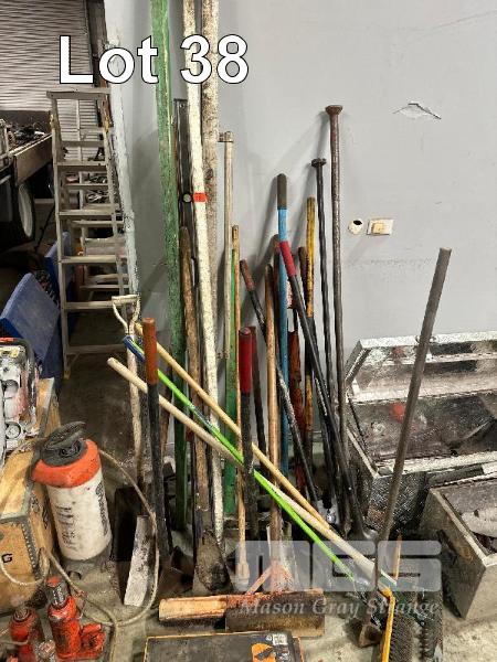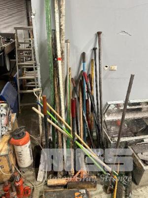 2 x ALLOY TOOL BOXES, (ROUGH CONDITION) 1400mm & 950mm, LARGE QTY LANDSCAPING TOOLS, POST HOLE DIGGERS, SLEDGE HAMMERS, SHOVELS, SPADES, SCREEDS, BROOMS ETC