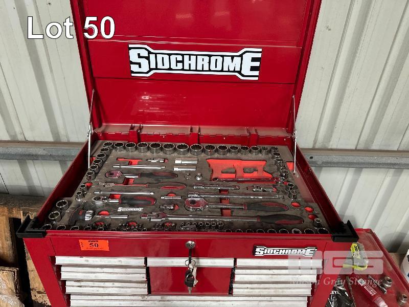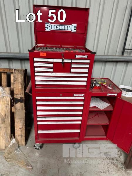 SIDCHROME TOOL CHEST, MOBILE WITH ADDITIONAL SIDE CABINET, (SOME TOOLS MISSING)