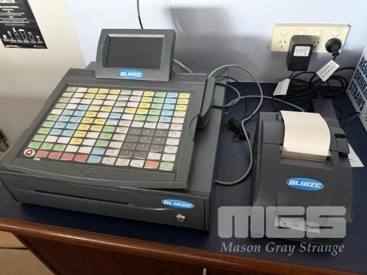 2 x POS REGISTERS, QUEST MOD: VM640-BM SENSOR TOUCH, PRE-PROGRAMMED (RESTAURANT & BAR???) WITH CASH DRAWERS & 3 x EPSON DOCKET PRINTERS (1 IN KITCHEN)