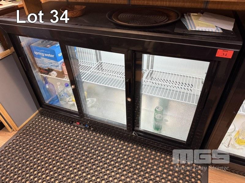 UNDER COUNTER BOTTLE DISPLAY FRIDGE, SC316SD, 3 x SLIDING DOORS, BLACK CASE, 240V