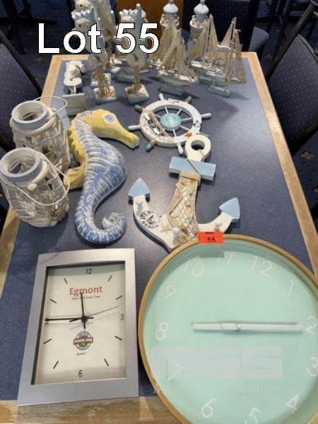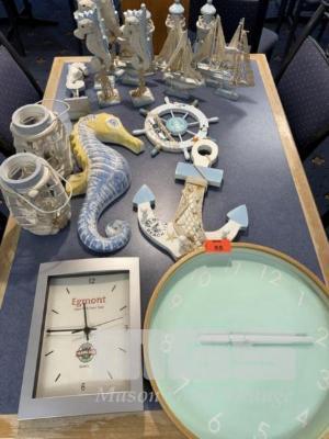ASSORTED MARITIME TABLE ORNAMENTS, DECORATIONS & CLOCKS
