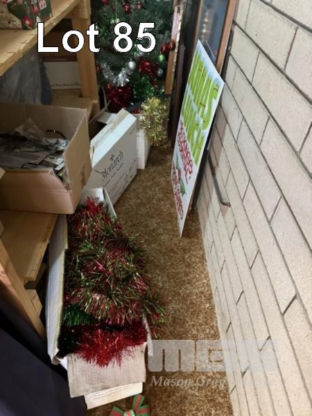 LARGE QUANTITY CHRISTMAS DECORATIONS, LARGE SANTA, CHRISTMAS TREES, FAKE PRESENTS, TINSEL, BALLOONS, FAIRY LIGHTS, ETC