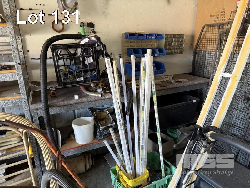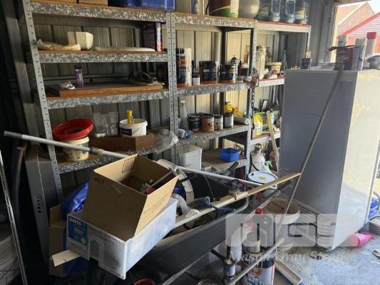 BALANCE OF CONTENTS INCLUDING 3 x PUSH BIKES, SACK TRUCK, 6 BAY STEEL STOCK SHELVING, WALKING FRAME, ELECTRICAL & PLUMBING FITTINGS & COMPONENTS, SPRAYERS, GARDEN TOOLS, ETC