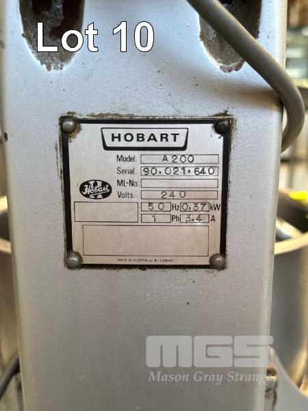 MIXER, HOBART MOD: A200 S/NO: 90.021.640 WITH BOWL & ACCESSORIES 1HP MOTOR 240V, 10 AMP