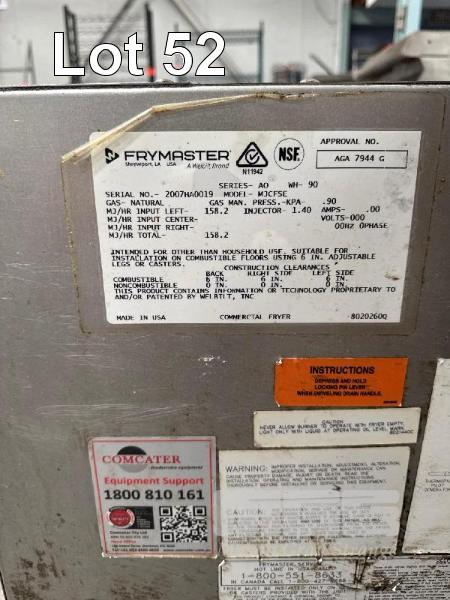 FRYMASTER TWIN BASKET DEEP FRYER, MOD: MJCFSE, DOM: 2007, NATURAL GAS, NO BASKETS