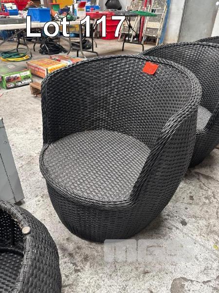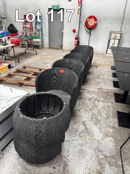 5 x WICKER OUTDOOR CHAIRS & 2 x WICKER OTTOMANS