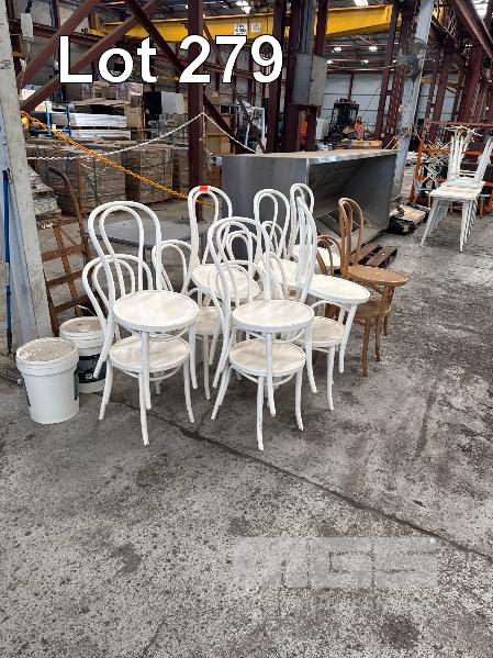 12 x WHITE BENTWOOD CAFE CHAIRS 2 x LIGHT BROWN