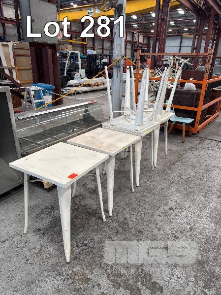 6 x WHITE STEEL CAFE TABLES 600 x 600mm