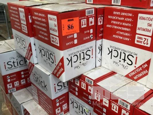 BUILDERS ADHESIVE, PHO STICK I-STICK, MS POLYMER ADHESIVE, ANTI MILDEW, FLEXIBLE, 6 x BOXES (12 x 300ml TUBES/BOX) EXP: 9/04/2026