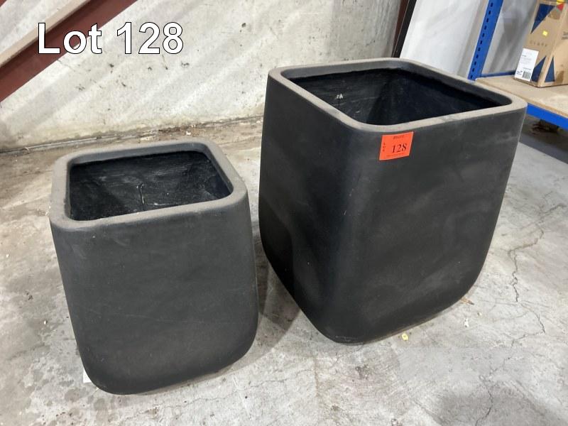 2 x CONTEMPORARY PLANTER POTS COLOUR: BLACK 1 @ 670mm (H) 1 @ 390mm (H)