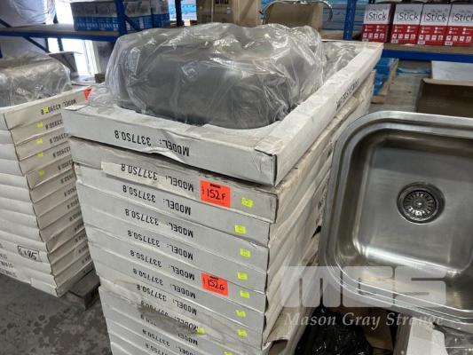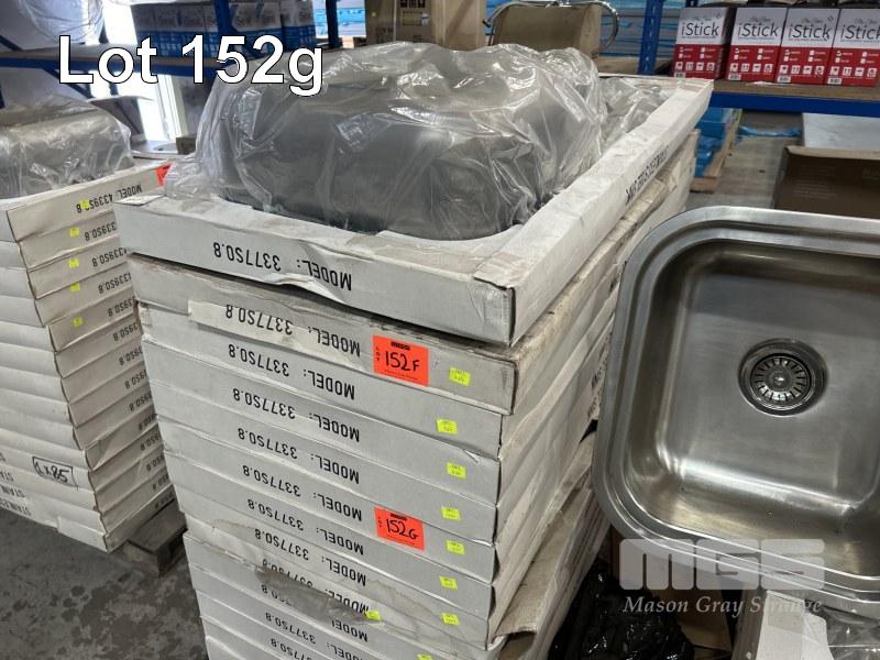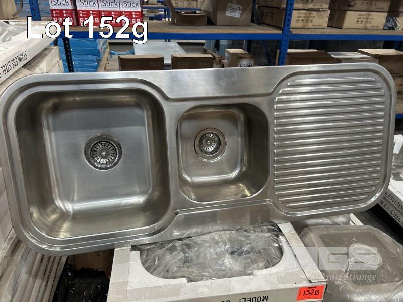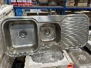 4 x STAINLESS STEEL TWIN BOWL SINKS, 1180 x 480mm WITH FITTINGS AS NEW