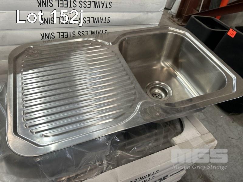 2 x STAINLESS STEEL SINGLE BOWL SINKS, 775 x 480mm WITH FITTINGS AS NEW