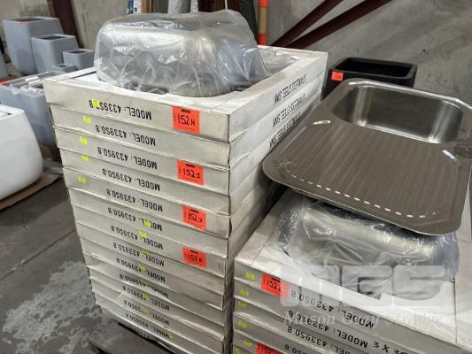 4 x STAINLESS STEEL SINGLE BOWL SINKS, 775 x 480mm WITH FITTINGS AS NEW