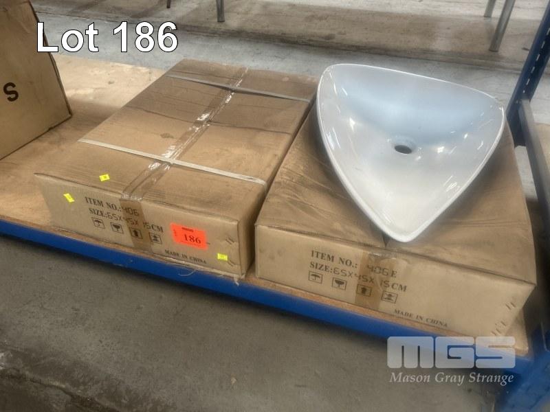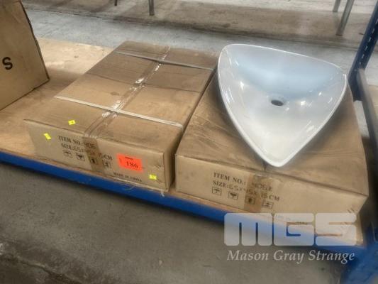 2 x WHITE CERAMIC BASIN, TRIANGULAR