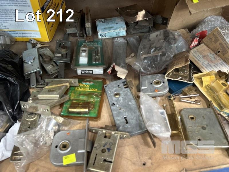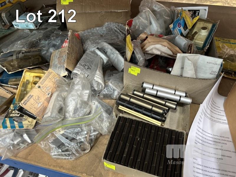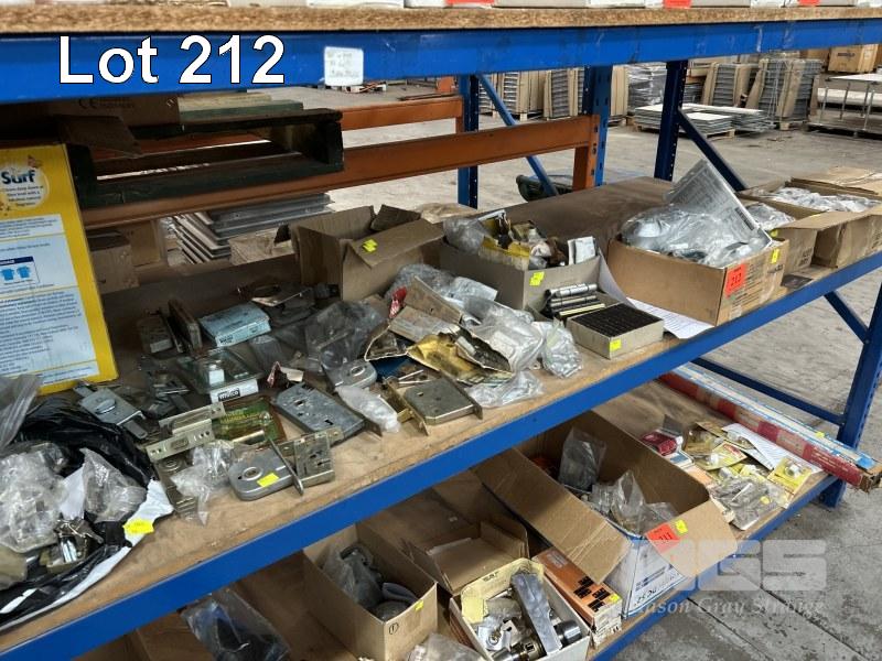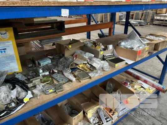 DOOR & WINDOW HARDWARE INCLUDING LOCKS, LATCHES, KEY CYLINDERS, BRACKETS, HINGES, ELECTRICAL & MECHANICAL DOOR LOCKS, LARGE QUANTITY, ASSORTED TYPES WINDOW & DOOR LOCKS 1 x SHELF