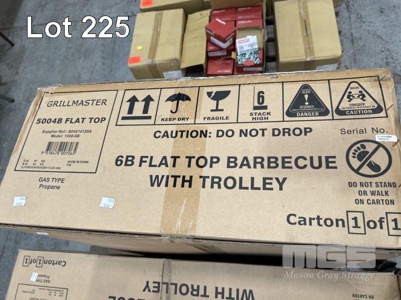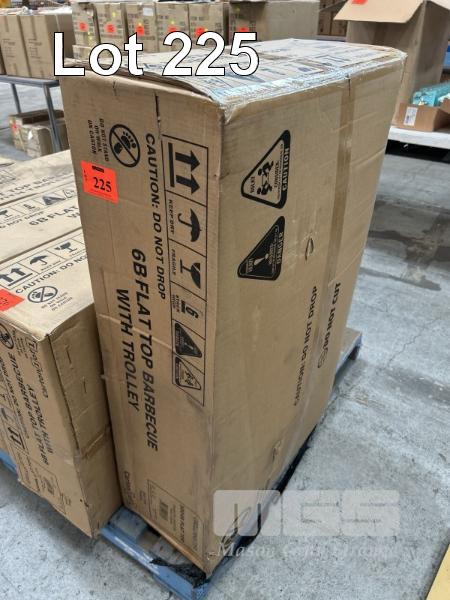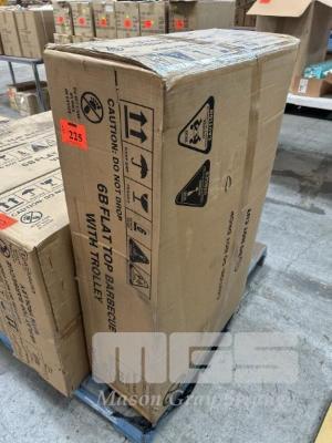 6 BURNER FLAT TOP BBQ WITH TROLLEY, NEW IN CARTON