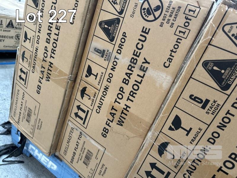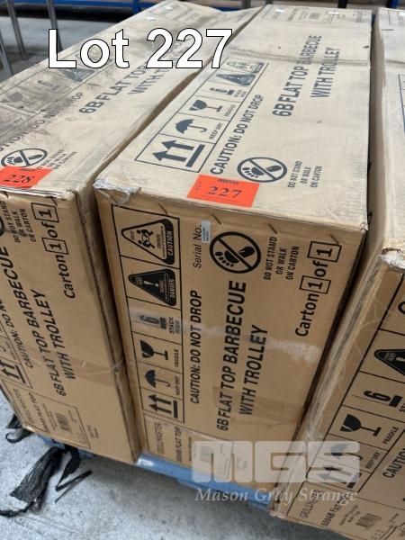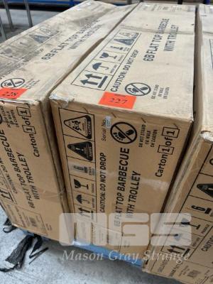 6 BURNER FLAT TOP BBQ WITH TROLLEY, NEW IN CARTON