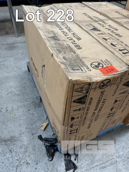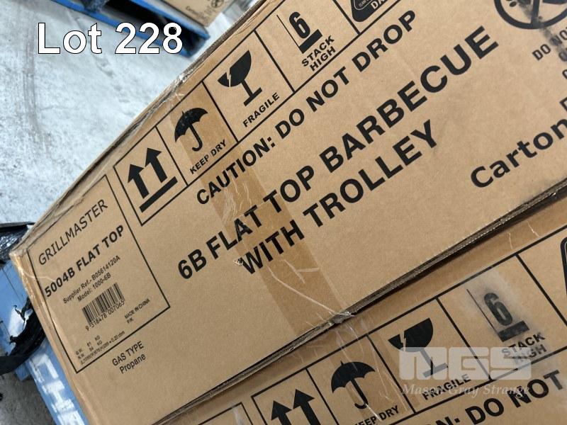 6 BURNER FLAT TOP BBQ WITH TROLLEY, NEW IN CARTON