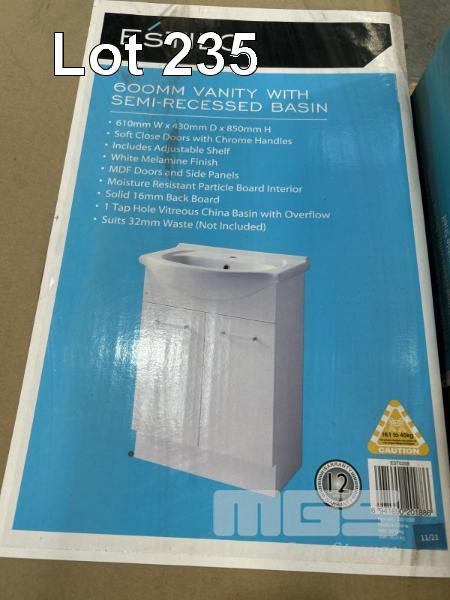 2 x VANITIES WITH RECESSED BASINS, ESTILO 600mm IN CARTON