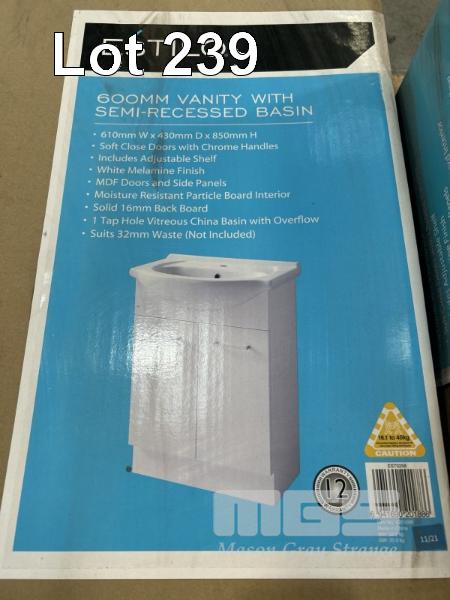 4 x VANITIES WITH RECESSED BASINS, ESTILO 600mm IN CARTON