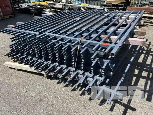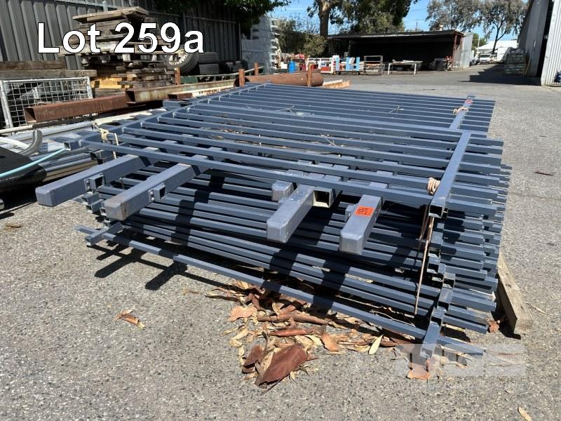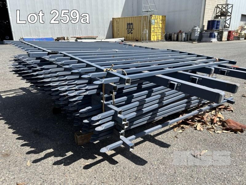 11 x TUBULAR STEEL FENCING PANELS, GREY 1900 x 2100m (H) APPROX & 1 x GATE 1160 x 2100mm (H) 1 x PALLET