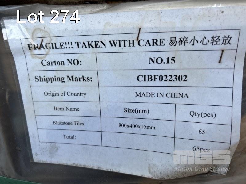 BLUESTONE TILES, 20.8m2 TOTAL, SIZE: 800 x 400 x 15mm, PACKAGED IN TIMBER CRATE