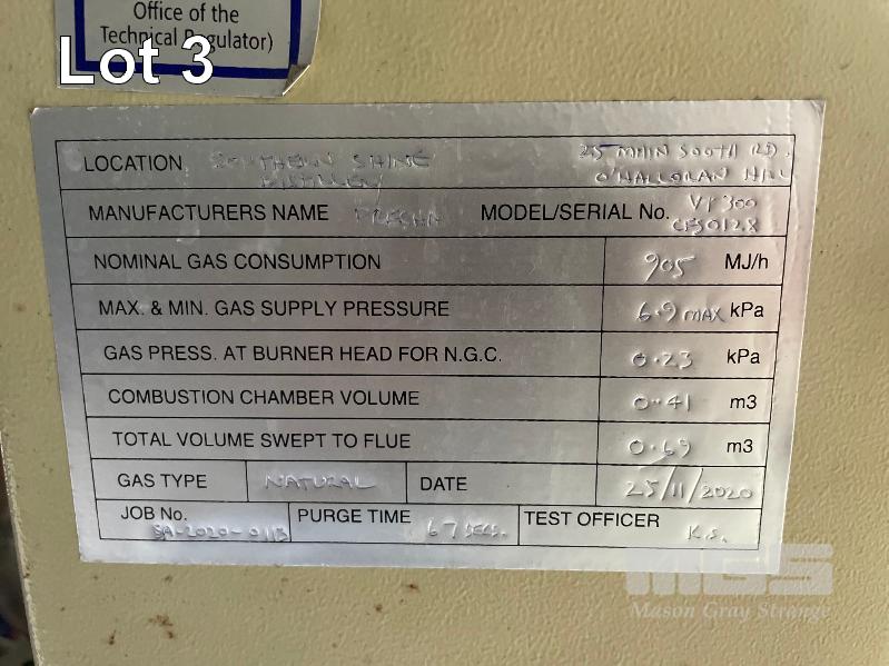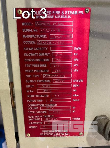 CONSOLIDATED FIRE & STEAM STEAM BOILER, MOD: PRESHA UT300, DOM: 2008, SERIAL: CFS0128, NAT GAS, 750KPA, 415V