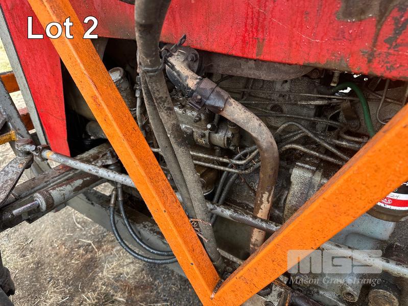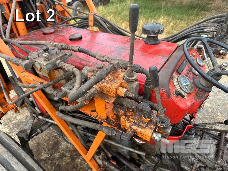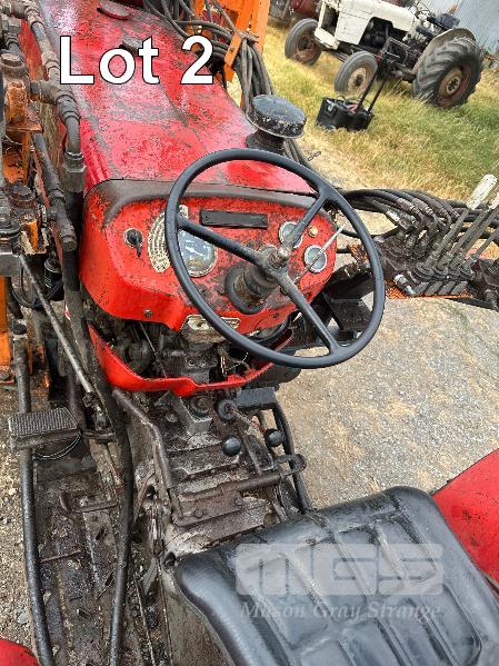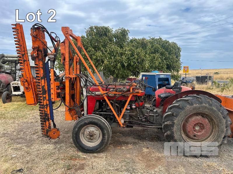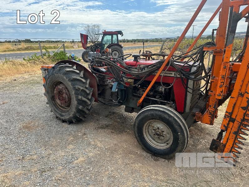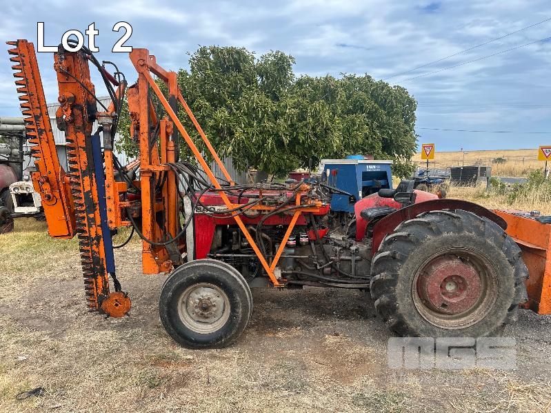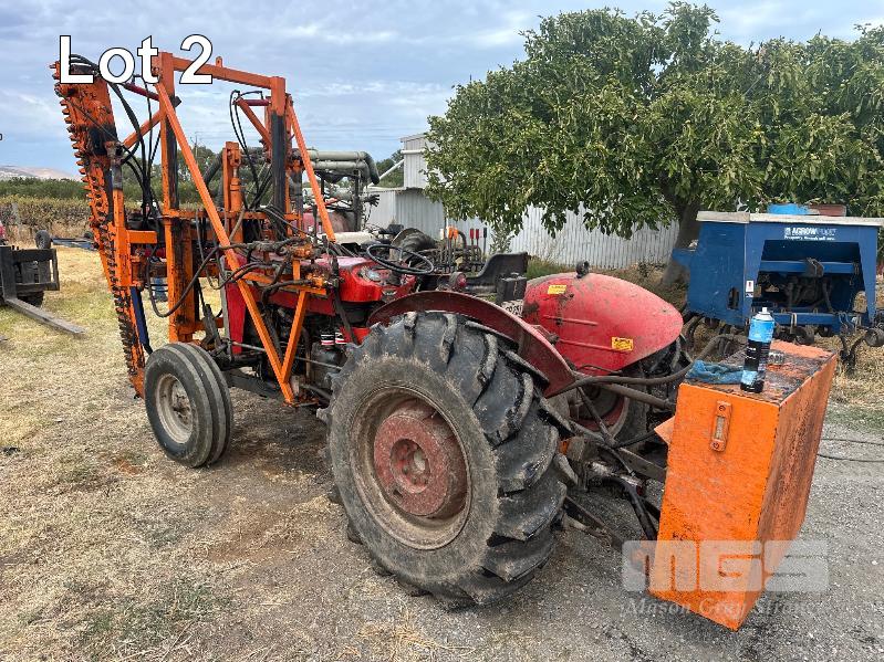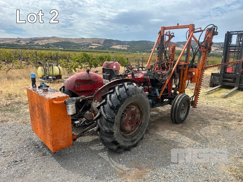 TRACTOR, MASSEY FERGUSON MOD: MF240 S/NO: N1941 2WD HOURS: 5,817 INDICATED HI LO, PTO, 3PTL, HYDRAULICS, FITTED WITH TWIN ROW VINE PRUNER HYDRAULIC TANK COUNTER WEIGHT NOTE: NO OIL, LEAK FROM TANK