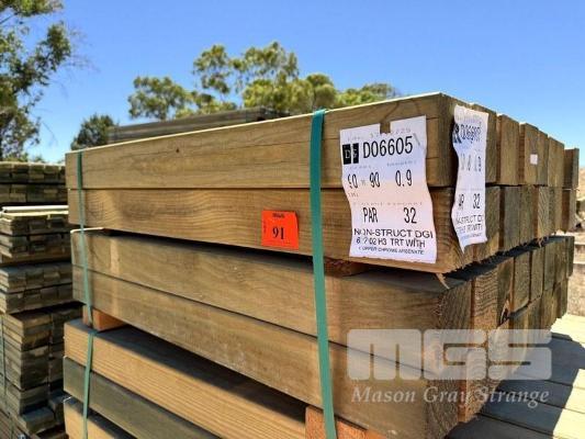 D06605 PACK OF CCA TREATED PINE TIMBER POSTS MERCH GRADE 90 X 90 MM 32 LENGTHS @ 900MM = 29 L/M