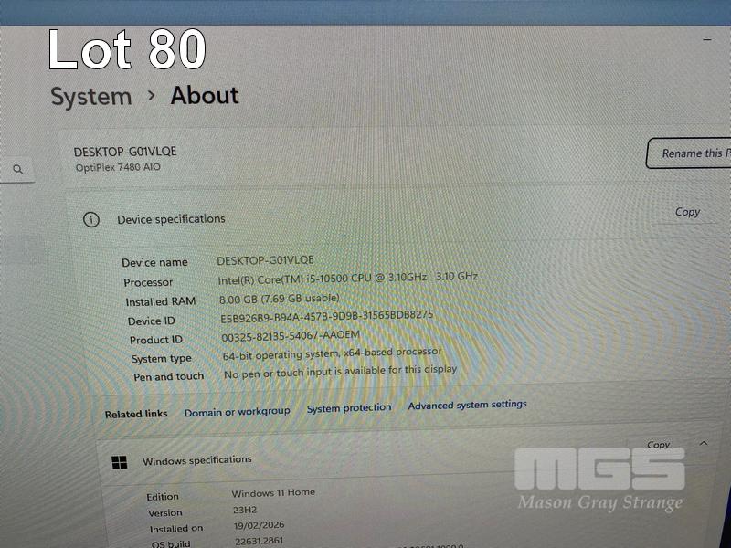 ALL-IN-ONE PC, DELL OPTIPLEX 7480, CORE i5 10500 (10TH GEN) @ 3.1GHz, 8GB DDR4 RAM, 512GB NVMe M.2 SSD, INBUILT 23.8" FHD WIDESCREEN (1920x1080), INTEL HD VIDEO, WEBCAM, 5 x USB, 1 x USB-C, Wi-Fi, BLUETOOTH, WINDOWS 11 HOME INSTALLED, KEYBOARD & MOUSE S/N:9LMWVD3