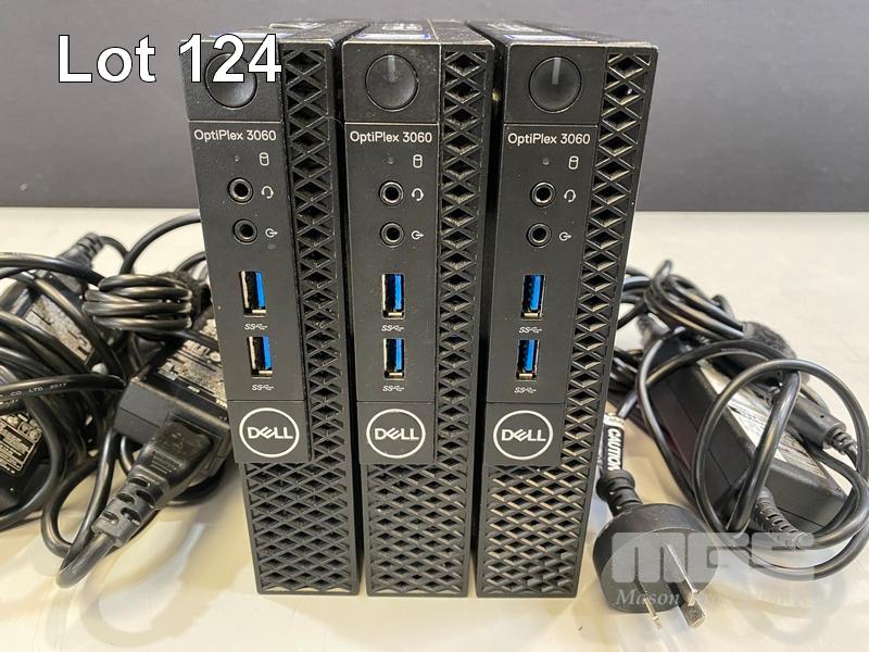 3 x DESKTOP PCS INC. - DELL OPTIPLEX 3060 MICRO, CORE i5 8500T (8TH GEN) @ 2.1GHz, 8GB DDR4 RAM, NO HDD WITH POWER SUPPLIES (65W) S/N:8S750T2, 8S670T2, 8SC90T2