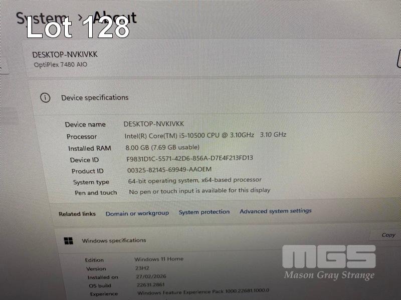 ALL-IN-ONE PC, DELL OPTIPLEX 7480, CORE i5 10500 (10TH GEN) @ 3.1GHz, 8GB DDR4 RAM, 512GB NVMe M.2 SSD, INBUILT 23.8" FHD WIDESCREEN (1920x1080), INTEL HD VIDEO, WEBCAM, 5 x USB, 1 x USB-C, Wi-Fi, BLUETOOTH, WINDOWS 11 HOME INSTALLED, KEYBOARD & MOUSE S/N:6SW54F3