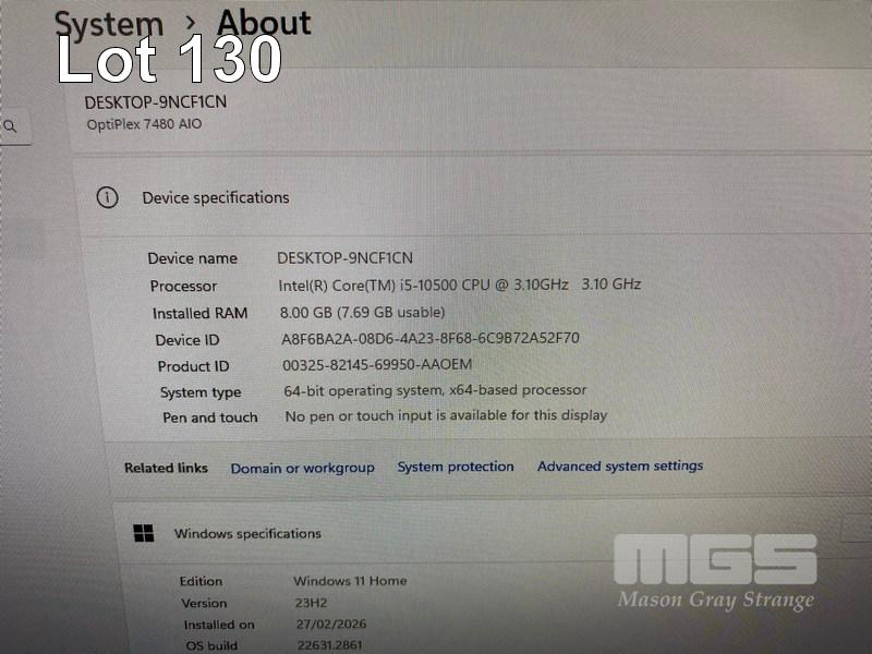 ALL-IN-ONE PC, DELL OPTIPLEX 7480, CORE i5 10500 (10TH GEN) @ 3.1GHz, 8GB DDR4 RAM, 512GB NVMe M.2 SSD, INBUILT 23.8" FHD WIDESCREEN (1920x1080), INTEL HD VIDEO, WEBCAM, 5 x USB, 1 x USB-C, Wi-Fi, BLUETOOTH, WINDOWS 11 HOME INSTALLED, KEYBOARD & MOUSE S/N:7SW54F3