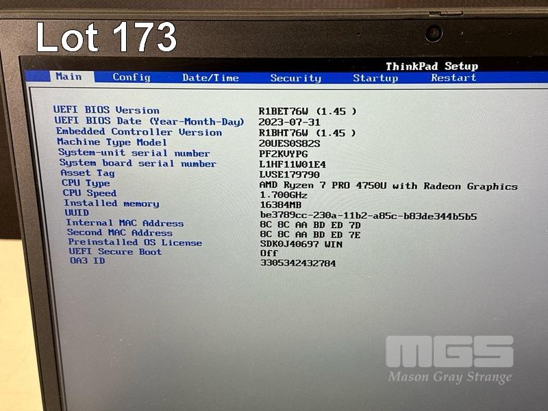 LAPTOP, LENOVO THINKPAD T14 Gen1, TYPE 20UE, AMD RYZEN 7 PRO 4750U @ 1.7GHz, 16GB DDR4 RAM, 256GB NVMe M.2 SSD, 14" TOUCHSCREEN (1920x1080), Wi-Fi, BLUETOOTH, WINDOWS 11 PRO INSTALLED (NO USB-C POWER SUPPLY) (NOTE: MARKS ON SCREEN) S/N:PF2KVYPG