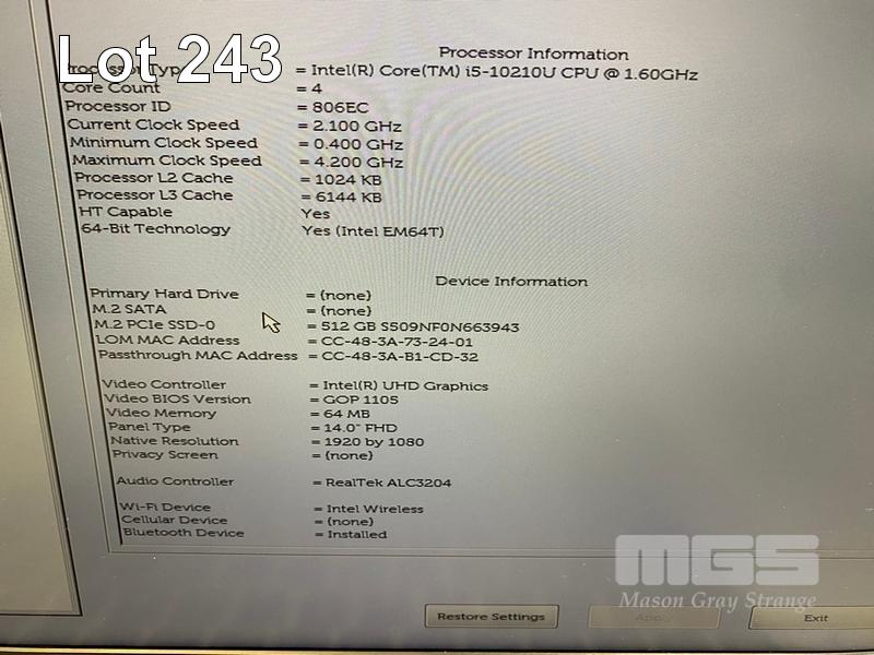 LAPTOP, DELL LATITUDE 5410, CORE i5 10210U (10TH GEN) @ 1.6GHz, 8GB DDR4 RAM, 512GB NVMe M.2 SSD, 14" WIDESCREEN (1920x1080), INTEL UHD GRAPHICS, Wi-Fi, BLUETOOTH, WINDOWS 11 HOME INSTALLED & POWER SUPPLY (NOTE: BATTERY NOT HOLDING CHARGE, MAJOR CASING PEELING, MINOR MARKS ON SCREEN) S/N:JWWT373