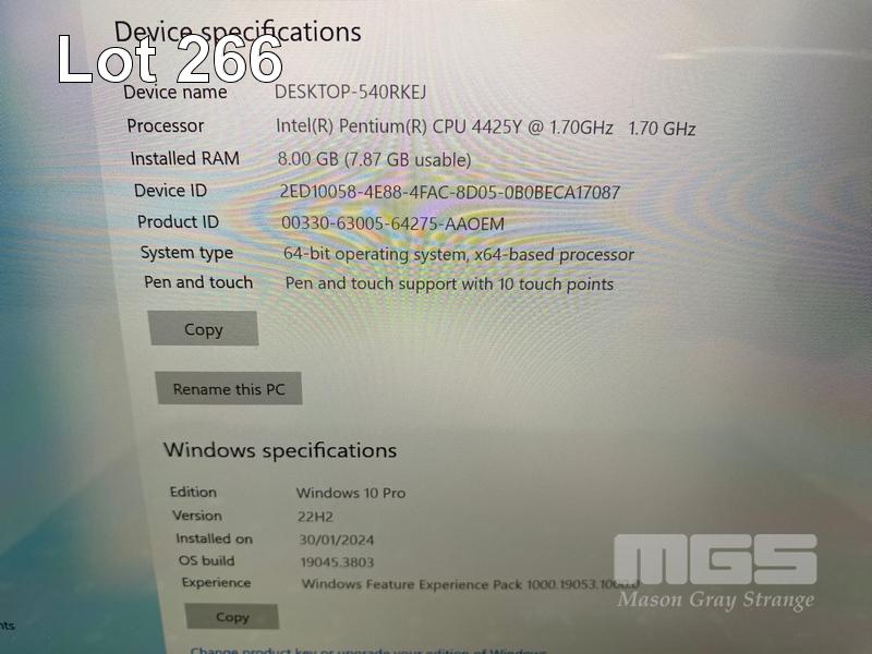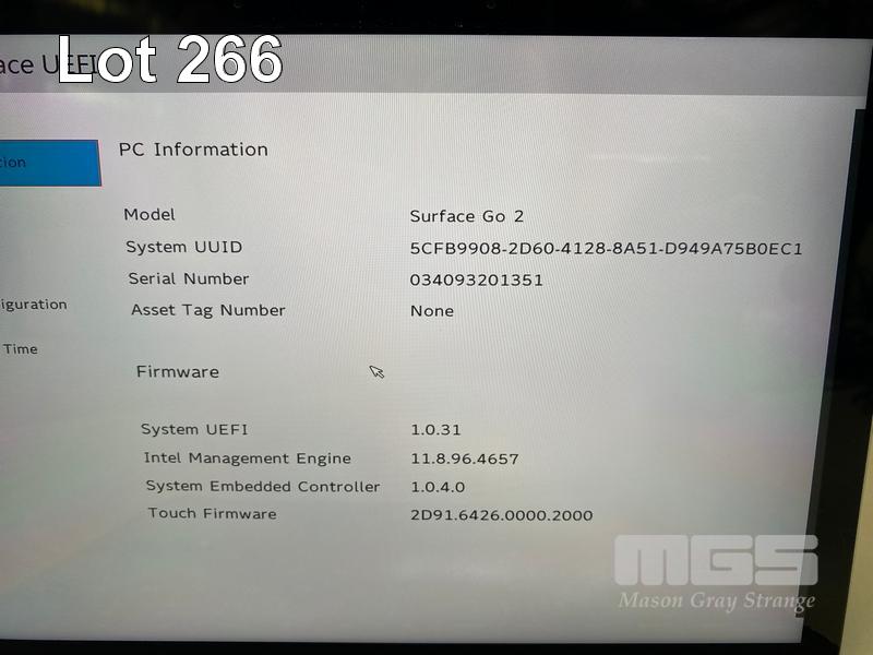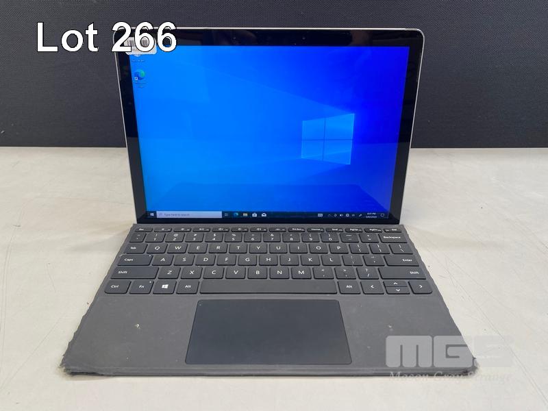 TABLET PC, MICROSOFT SURFACE GO 2, MODEL 1901, PENTIUM GOLD 4425Y @ 1.7GHz, 8GB DDR3 RAM, 128GB NVMe M.2 SSD, 10" TOUCHSCREEN (1800x1200), INTEL UHD GRAPHICS 615, Wi-Fi, BLUETOOTH, WINDOWS 10 PRO INSTALLED, KEYBOARD TYPE COVER & POWER SUPPLY (NOTE: MINOR DAMAGE TO CASING) S/N:034093201351