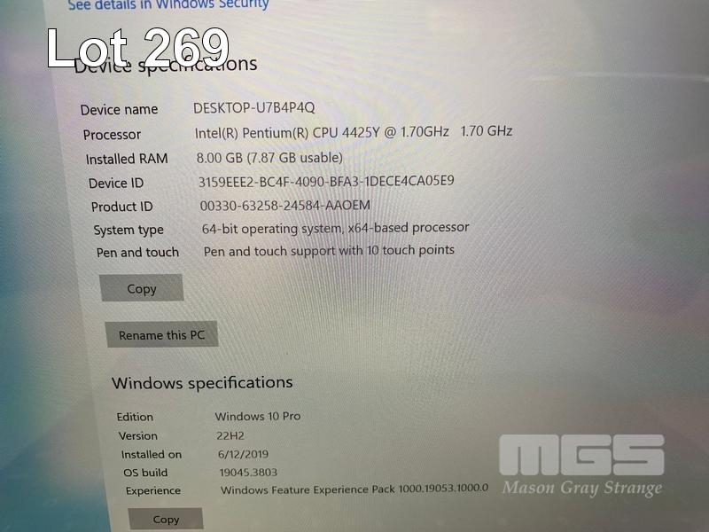 TABLET PC, MICROSOFT SURFACE GO 2, MODEL 1901, PENTIUM GOLD 4425Y @ 1.7GHz, 8GB DDR3 RAM, 128GB NVMe M.2 SSD, 10" TOUCHSCREEN (1800x1200), INTEL UHD GRAPHICS 615, Wi-Fi, BLUETOOTH, WINDOWS 10 PRO INSTALLED, KEYBOARD TYPE COVER & POWER SUPPLY (NOTE: KEYBOARD POOR CONDITION) S/N:011361211251
