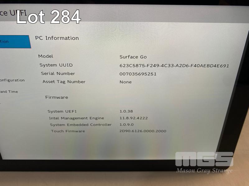 TABLET PC, MICROSOFT SURFACE GO, MODEL 1824, PENTIUM GOLD 4415Y @ 1.6GHz, 8GB DDR3 RAM, 128GB NVMe M.2 SSD, 10" TOUCHSCREEN (1800x1200), INTEL HD GRAPHICS 615, Wi-Fi, BLUETOOTH, WINDOWS 10 PRO INSTALLED (NO POWER SUPPLY) (NOTE: MINOR DAMAGE TO CASING) S/N:007035695251