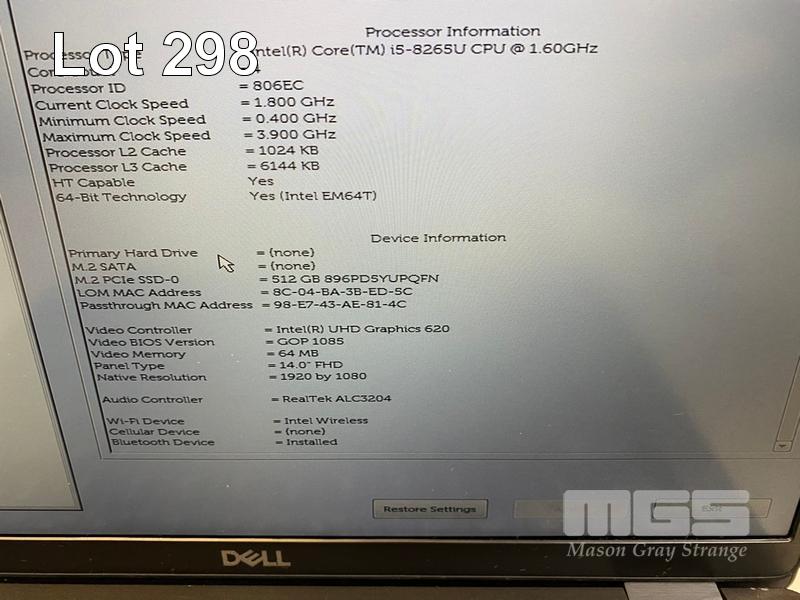 LAPTOP, DELL LATITUDE 5400, CORE i5 8265U (8TH GEN) @ 1.6GHz, 8GB DDR4 RAM, 512GB NVMe M.2 SSD, 14" WIDESCREEN (1920x1080), INTEL UHD GRAPHICS 620, Wi-Fi, BLUETOOTH, WINDOWS 11 HOME INSTALLED & POWER SUPPLY (NOTE: MINOR MARKS ON SCREEN) S/N:4N5JZY2