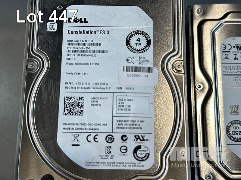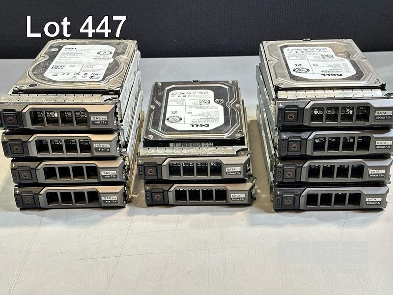 4 x DELL CONSTELLATION 4TB SAS HARD DRIVES, 3.5" WITH CADDIES 2 x DELL ENTERPRISE CLASS 250GB SATA HARD DRIVES, 3.5" WITH CADDIES 4 x DELL ENTERPRISE CLASS 500GB SATA HARD DRIVES, 3.5" WITH CADDIES