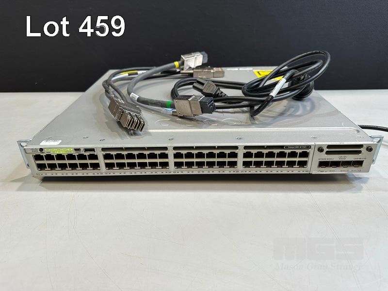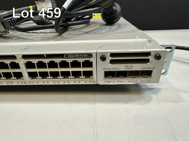 CISCO CATALYST 3850 48 PoE+ 48-PORT SWITCH, WS-C3850-48F-L V07 C3850-NM-2-10G NETWORK MODULE, 1 x PWR-C1-1100WAC PSU WITH NOTCH POWER CABLE & STACK CABLES
